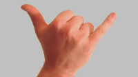 It consists of extending the thumb and smallest finger while holding the three middle fingers curled, and raising the hand in salutation while presenting the back – the hand may be rotated back and forth for emphasis.